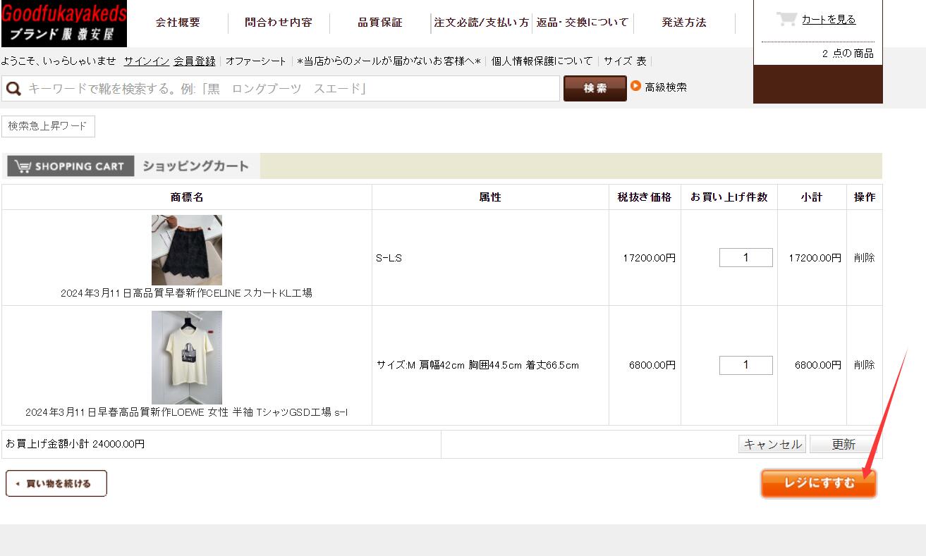 あなたのカート(すなわち量の変化、サイズの変化)に変更を加えた場合は、あなたがチェックアウトに進む前に'アップデートカート'ボタンをクリックする必ずしてください。