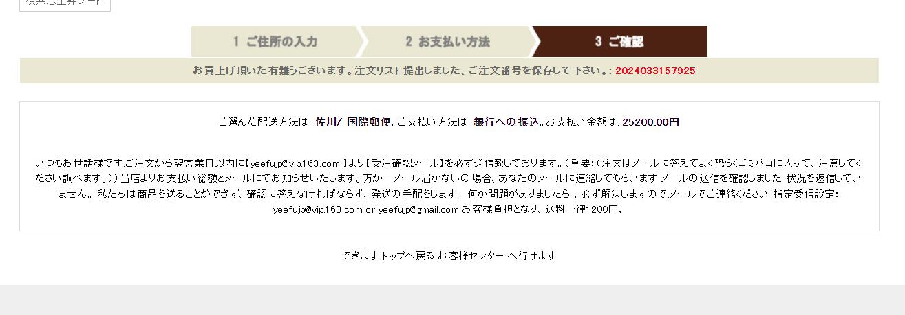 ご注意、ご註文メールアドレスを間違えて記入してはいけません。