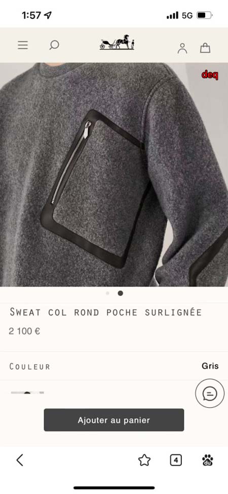 2023年10月25日秋冬高品質新品入荷 エルメス ラムの綿毛スウェットdeqian工場
