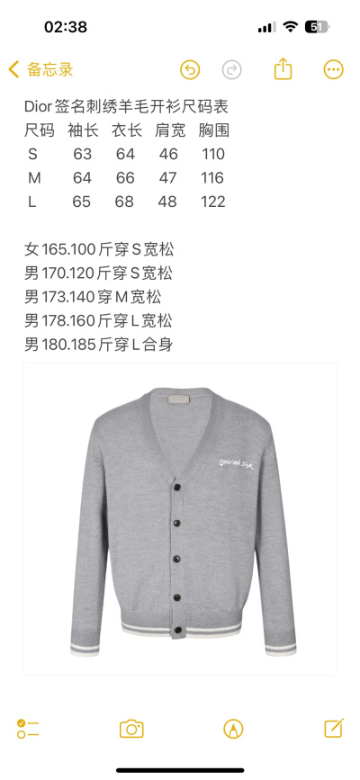 2024年10月9日秋冬原版復刻新品入荷ディオールニットカーディガン YIYI工場S-L