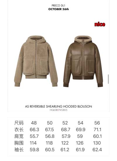 2024年12月5日秋冬原版復刻ルイヴィトン 毛皮一体 ジャケットアウター NICE工場
