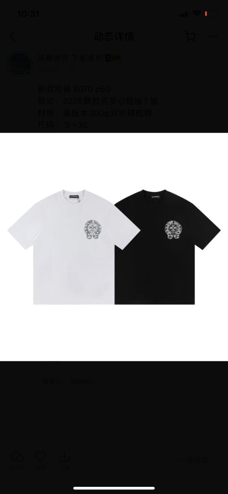 2026年4月14日春夏入荷新作Chrome Hearts短袖Tシャツ人気商品/HJJ工場